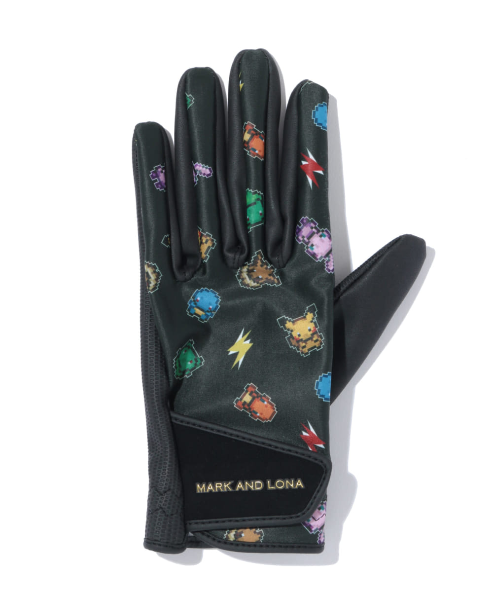 ポケモンのピクセル風グラフィックが甲いっぱいにデザインされたグローブ。