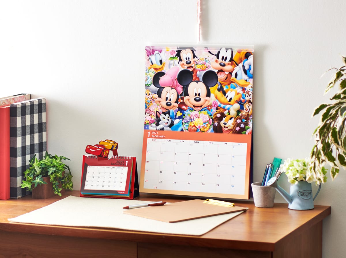 ディズニーストアに、さまざまなキャラクターがデザインされた2021年版のカレンダーやスケジュール帳が登場。
