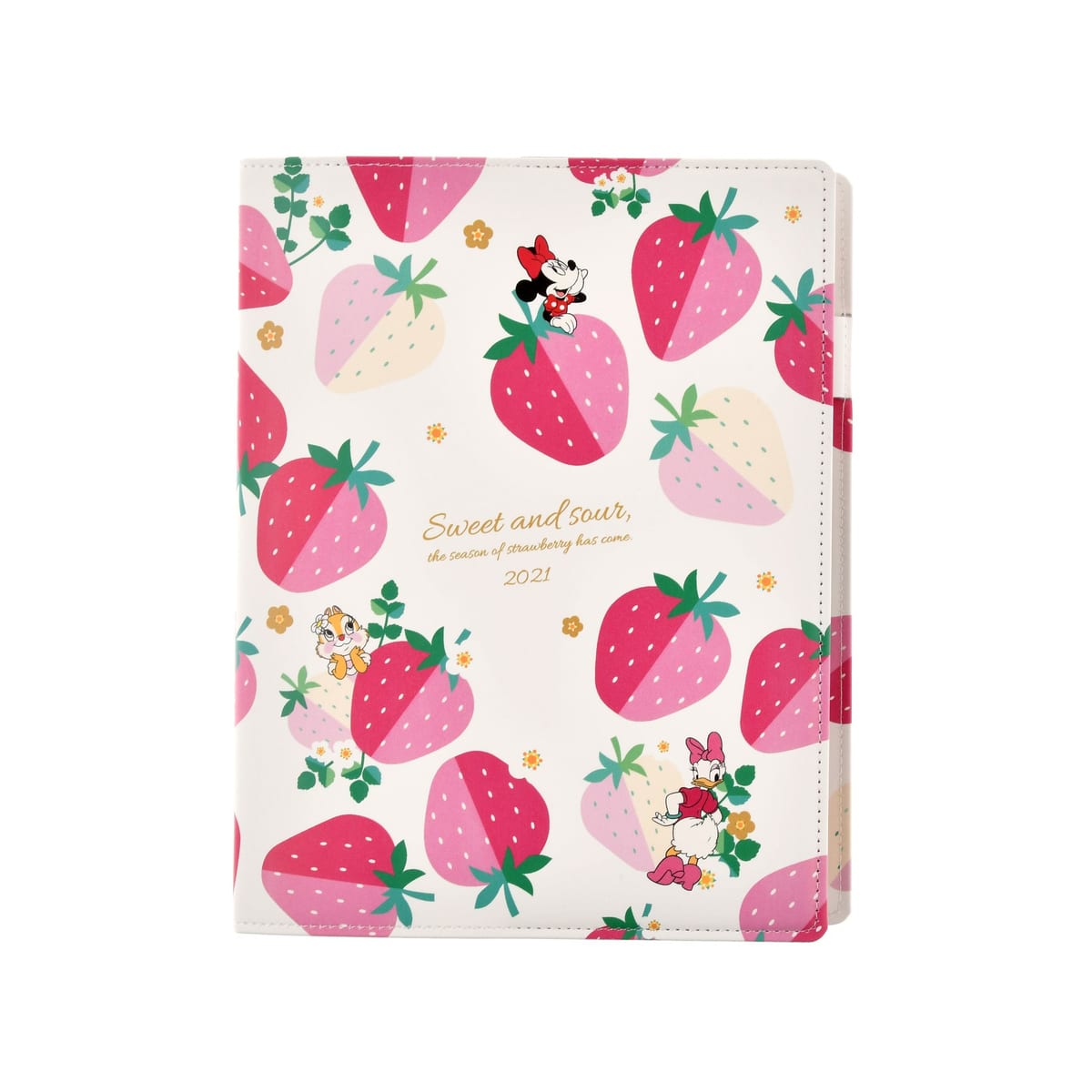 ストロベリーをベースに「ミニーマウス」や「デイジーダック」「クラリス」が描かれたガーリーなデザインや