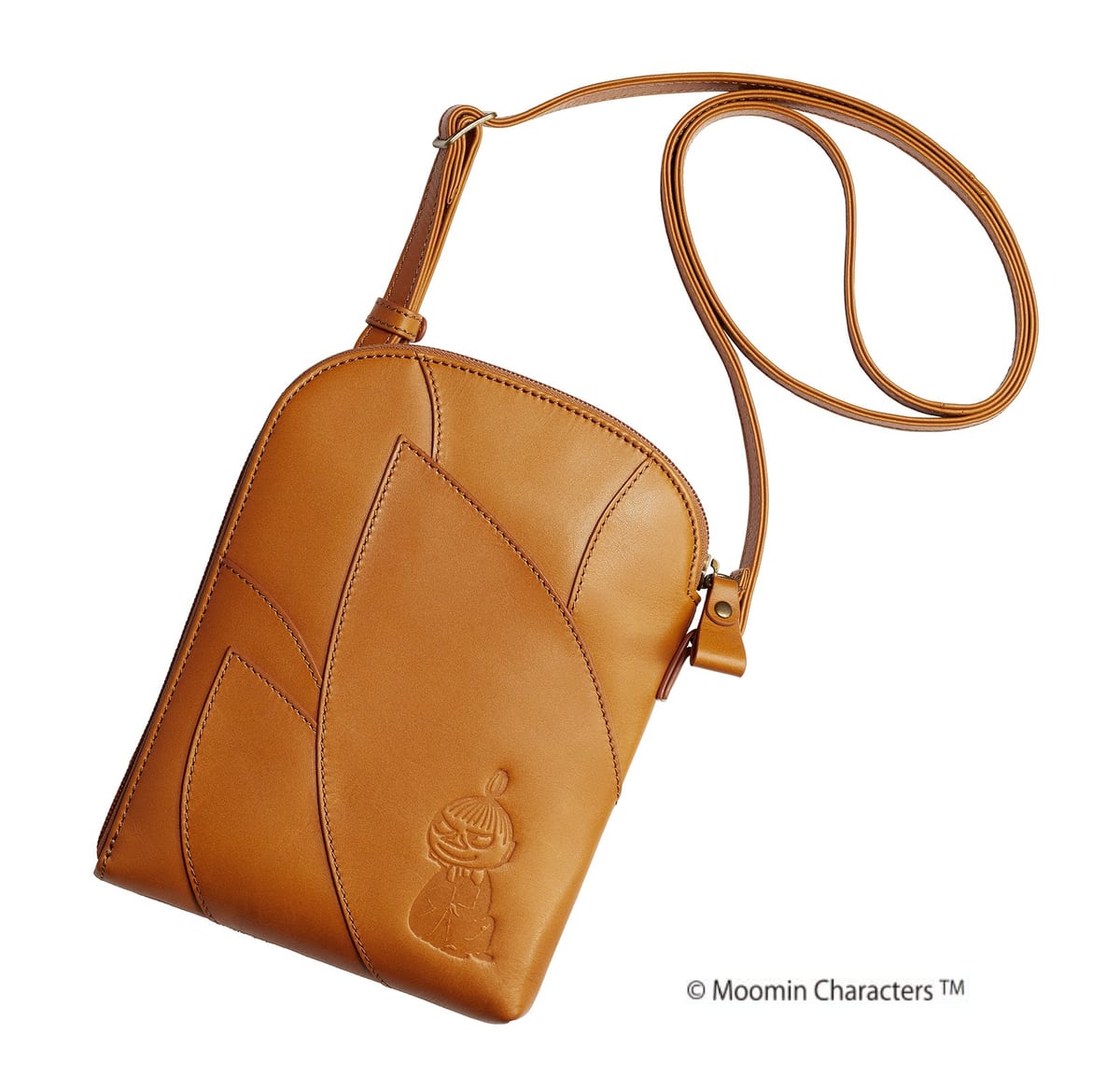 ちょこんと座ってニヤリとほほ笑む「リトルミイ」をキャラメル色のナチュラルレザーでうつしたミニポシェットの登場です。