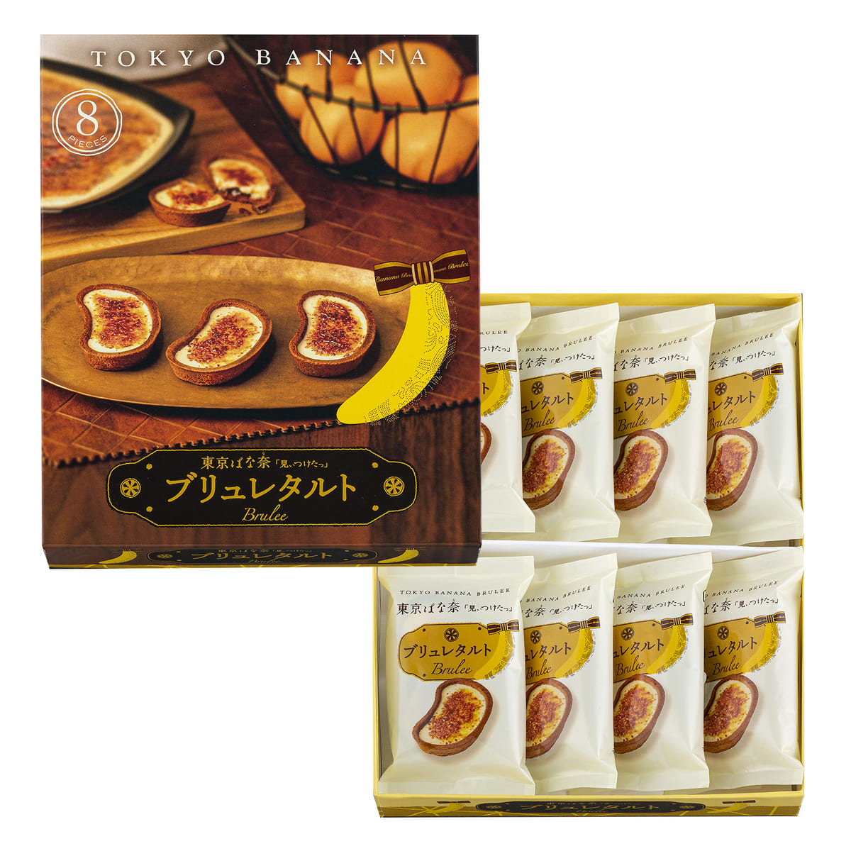 ひとつひとつ丁寧にブリュレしてパリッとした食感がやみつきになるキャラメリゼした表面に、東京ばな奈型のサクッとしたタルトが下支え。
