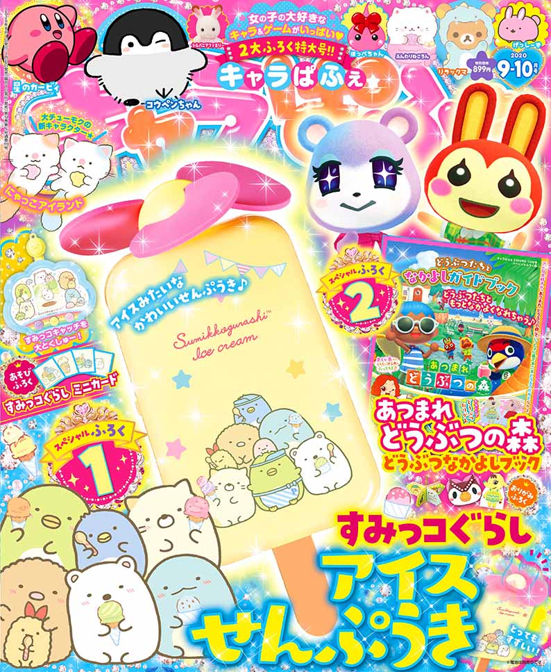 女の子のためのゲーム&キャラクター雑誌「きゃらぱふぇ」の2020年9-10月号に、「すみっコぐらし」のアイスせんぷうきが付録として付いています。