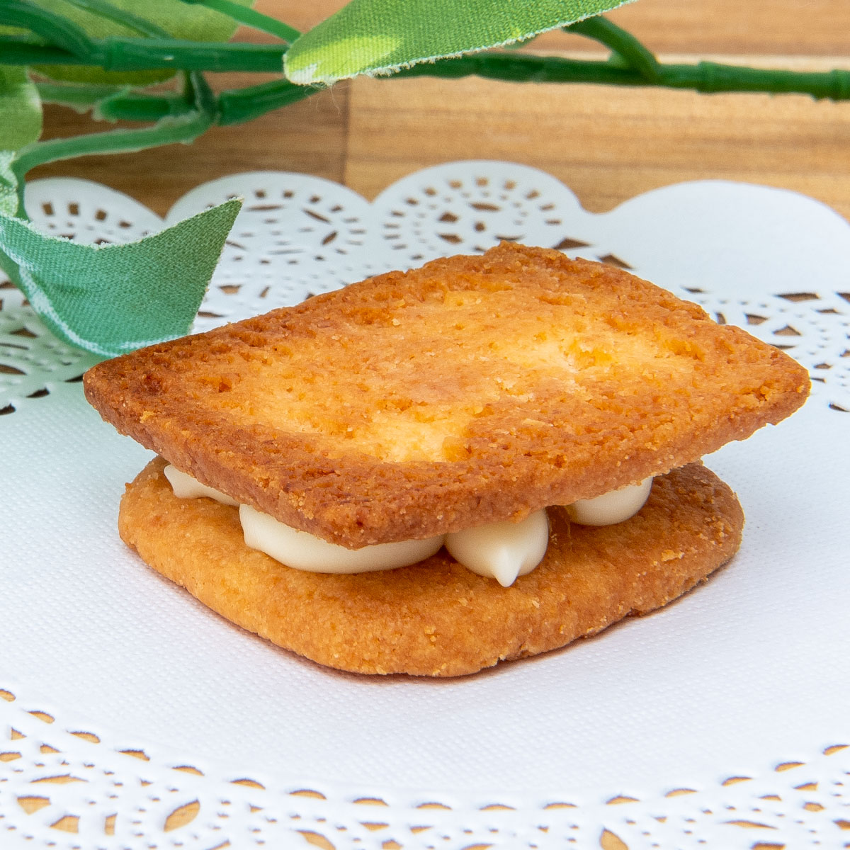 まるでチーズをそのまま焼き上げたような濃厚な味わいのクッキーで、こだわりのクリームをサンドしたスイーツです。