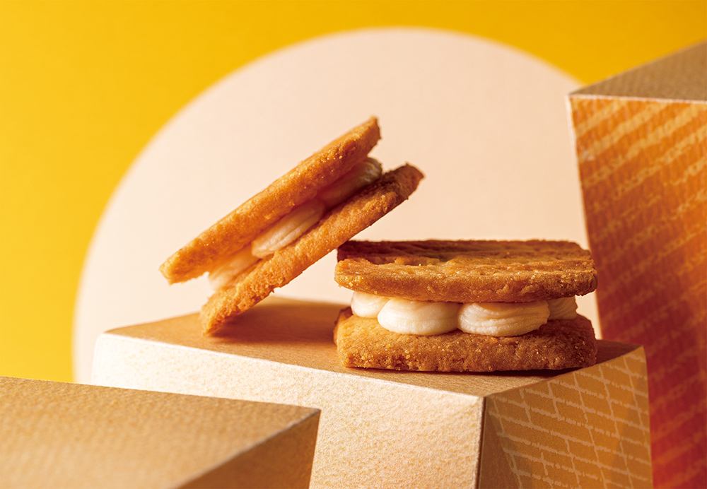 マイスターチーズクワトロサンドは、たっぷりのチーズでカリッカリに焼きたあげたチーズラングドシャクッキー。