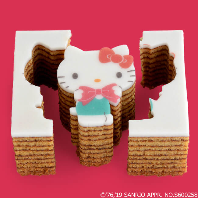 じっくり丁寧に焼き重ねた塩キャラメルのバウムが、「ハローキティ」の形にカットされています!
