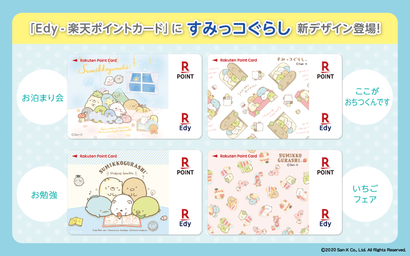 毎日のお買い物に便利な「Edy-楽天ポイントカード」に、「すみっコぐらし」のNewデザインが登場しました!