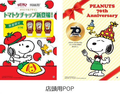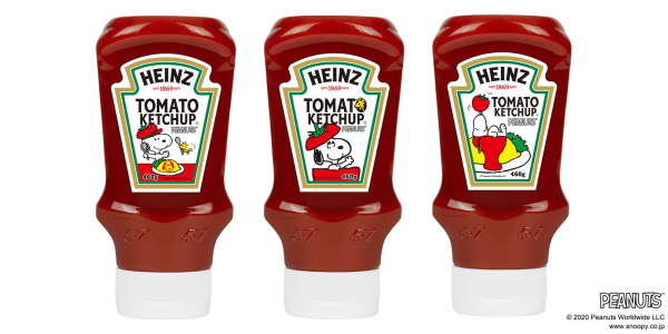 ケチャップの代名詞「ハインツ トマトケチャップ 逆さボトル」にアメリカの有名コミック『PEANUTS(ピーナッツ)』のキャラクター「スヌーピー」ラベルが登場!