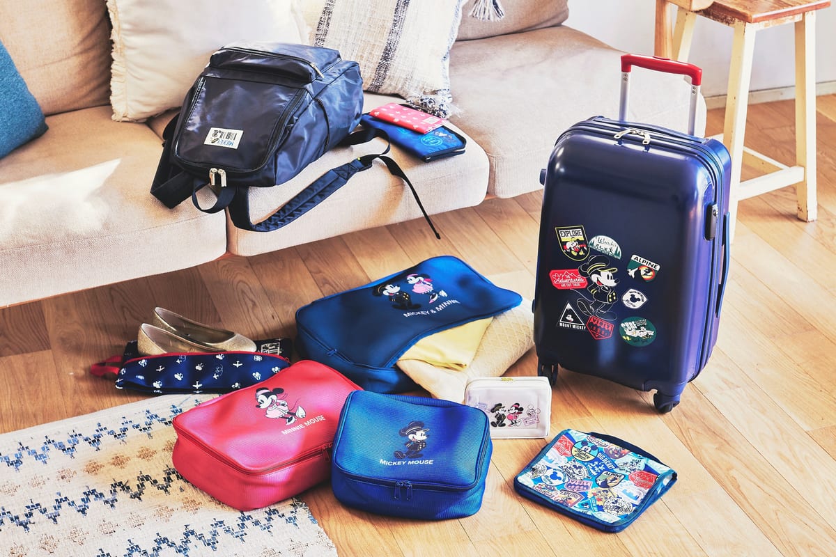 ディズニーストアから、ネイビーや赤を基調とした鮮やかなカラーが目を引くトラベル関連グッズが登場。