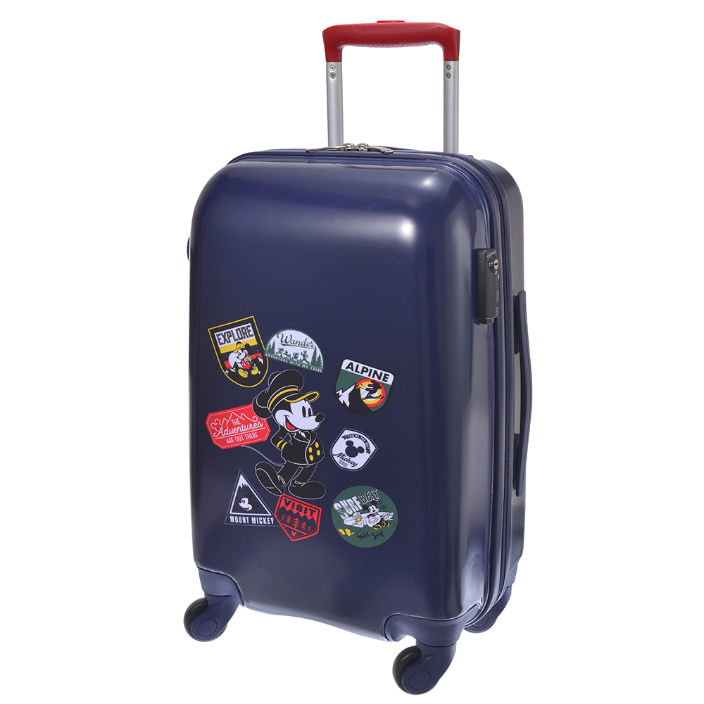 世界各国の特徴を生かした絵柄に「ミッキーマウス」を落とし込んだステッカー風プリント入り「スーツケース」