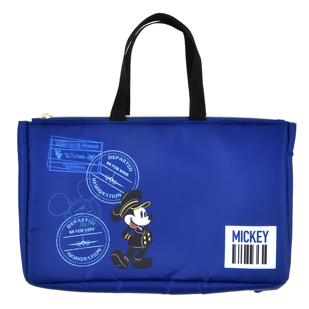 パイロット姿の「ミッキーマウス」とキャビンアテンダント姿の「ミニーマウス」がデザインされた、ラージサイズの洗える「ポーチ」