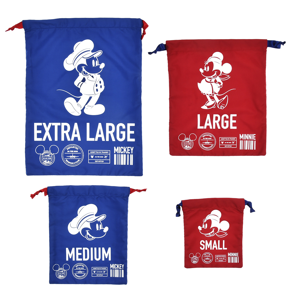 パイロット風の制服を着た「ミッキーマウス」客室乗務員風の制服を着た「ミニーマウス」のアートを用いて、鮮やかなネイビーや赤を基調としたカラーが印象的なデザインで、いずれも性別や年代を問わずご使用できます。
