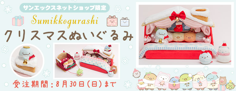 サンエックスネットショップ限定で、「すみっコぐらし」のクリスマスぬいぐるみが登場!