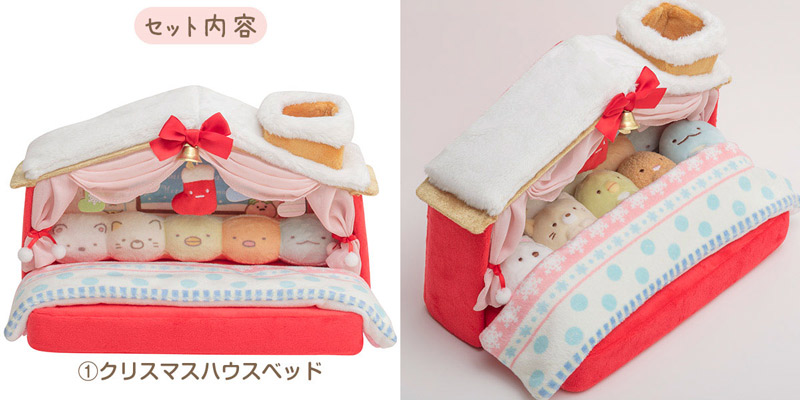 「クリスマスハウスベッド」で「すみっコ」たちがぬくぬく過ごす、素敵なぬいぐるみセット。