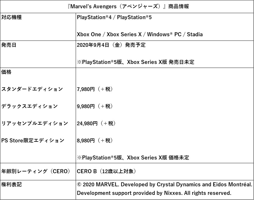 スクウェア・エニックス「Marvel’s Avengers(アベンジャーズ)」は、2020年9月4日より発売開始です。