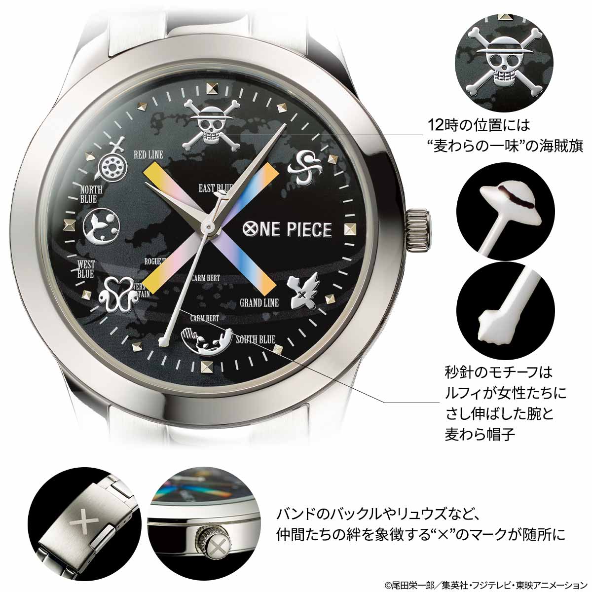 秒針のモチーフは「ルフィ」が女性たちにさし伸ばした腕と麦わら帽子。