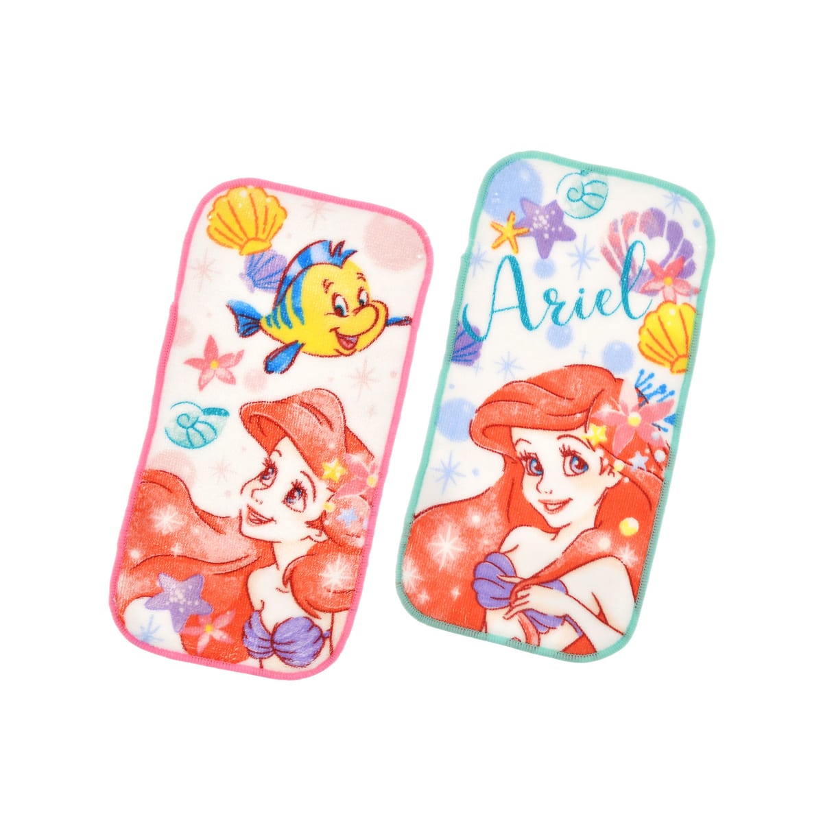 『リトル・マーメイド』のディズニープリンセス「アリエル」デザインのポケットタオル。