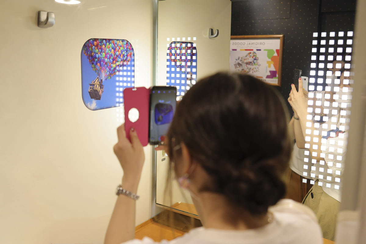 外観のデザインは、映画同様にピクサー・ランプから始まり、生き生きとしたピクサーの仲間たちが次々に登場!