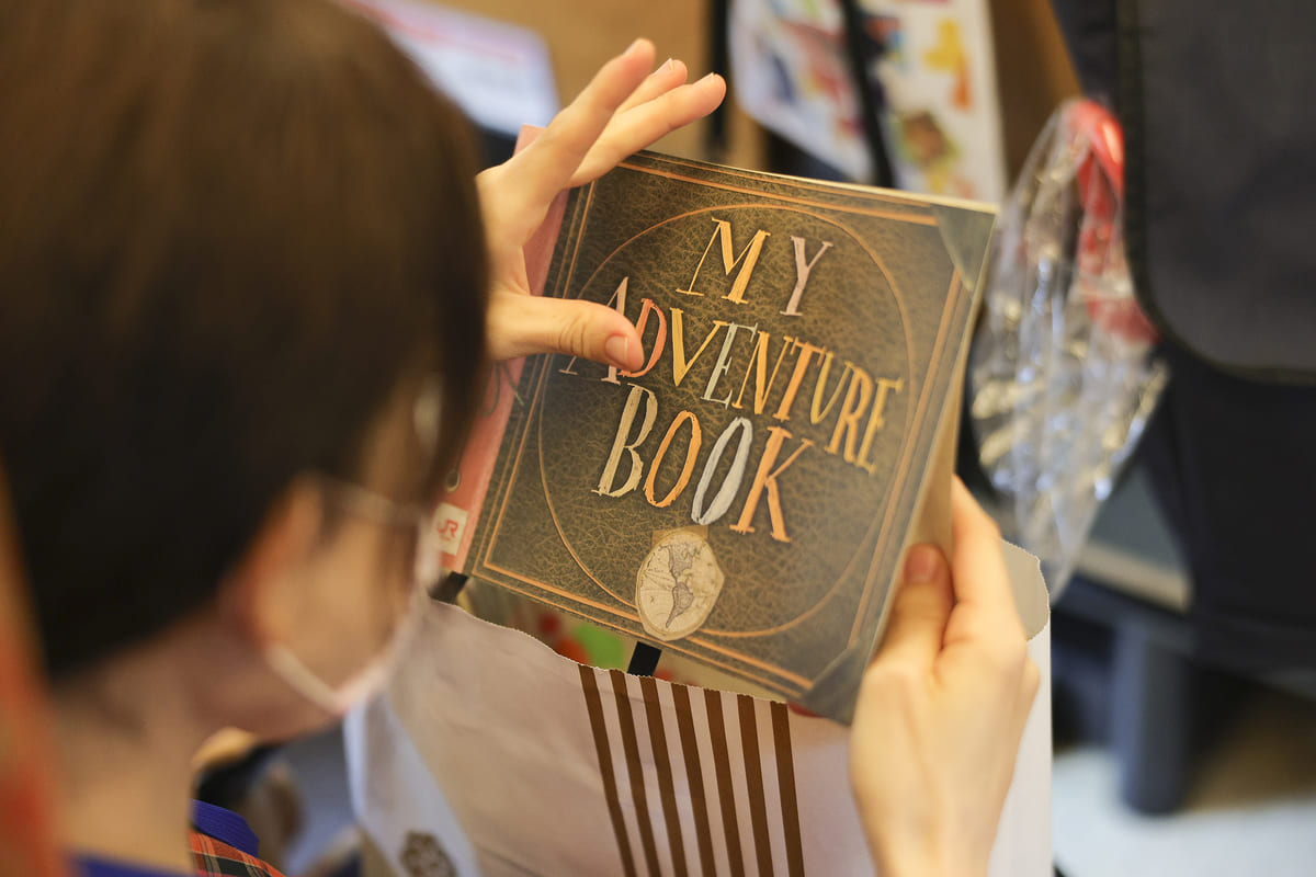 ディズニー&ピクサー映画『カールじいさんの空飛ぶ家』で子どもの頃のエリーが持っていた「マイ・アドベンチャーブック」からインスピレーションを受けて作られたリーフレットも用意されています。