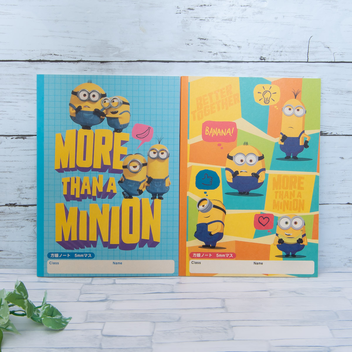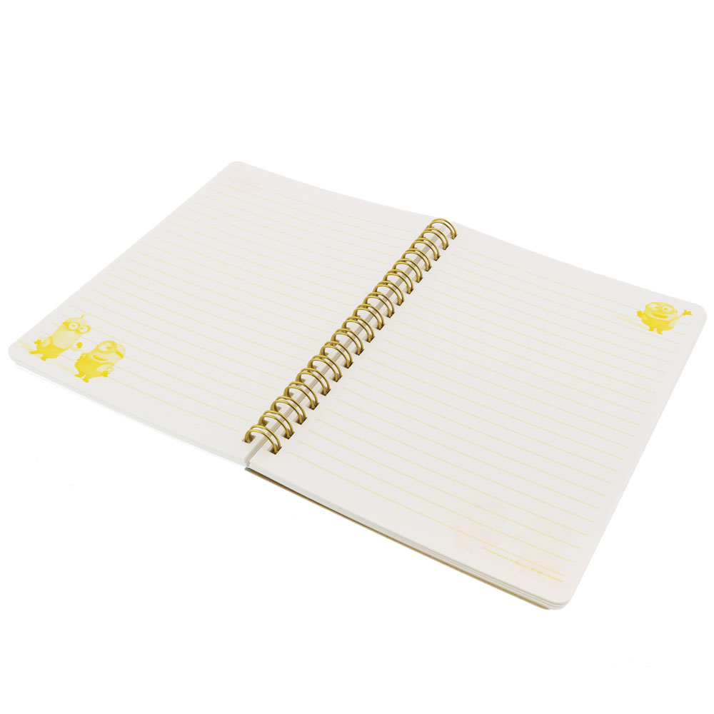 本文にもミニオンたちが描かれたWリングタイプのノートは折り返しがしやすく、フラットに使用できるのでとっても便利。