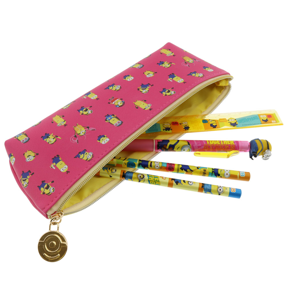 引き手に可愛いミニオンフェイスがあしらわれた、スリムタイプのペンケース。