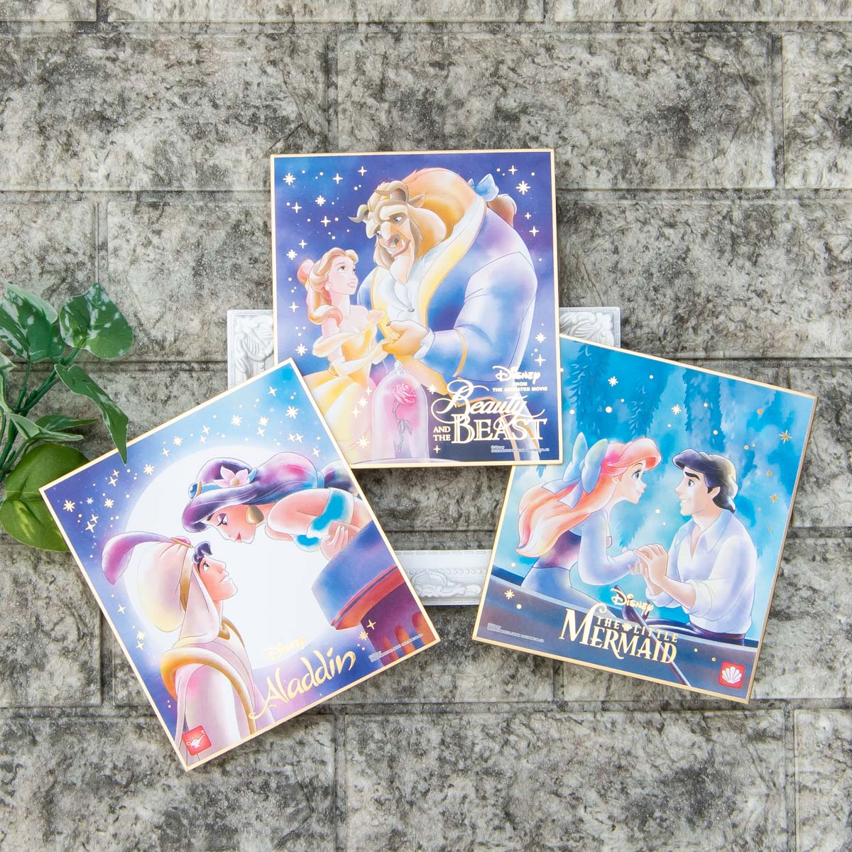 『リトル・マーメイド』、『美女と野獣』、『アラジン』の美しいアートは劇中の名シーンをイメージさせるデザイン。