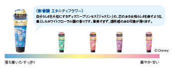 今回新たに、やわらかく透明感のある香りの “エタニティフラワー”を加え、ディズニープリンセスたちが花々に包み込まれた新デザインを使用したパッケージで登場します☆