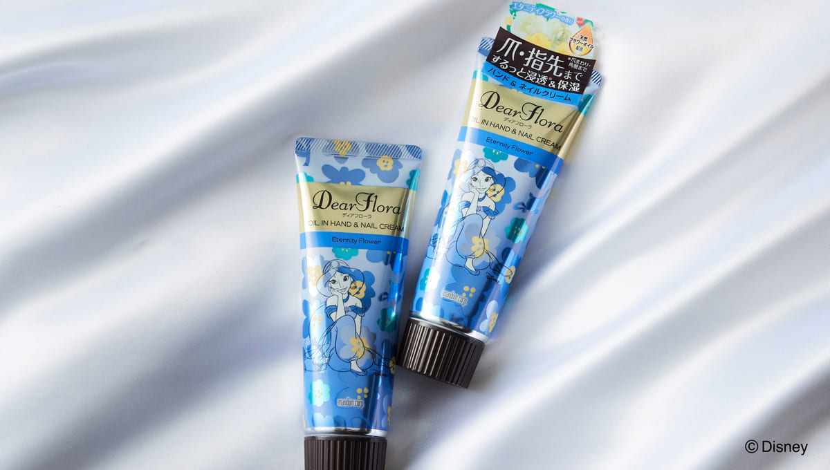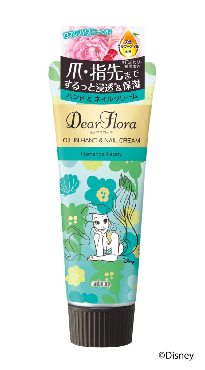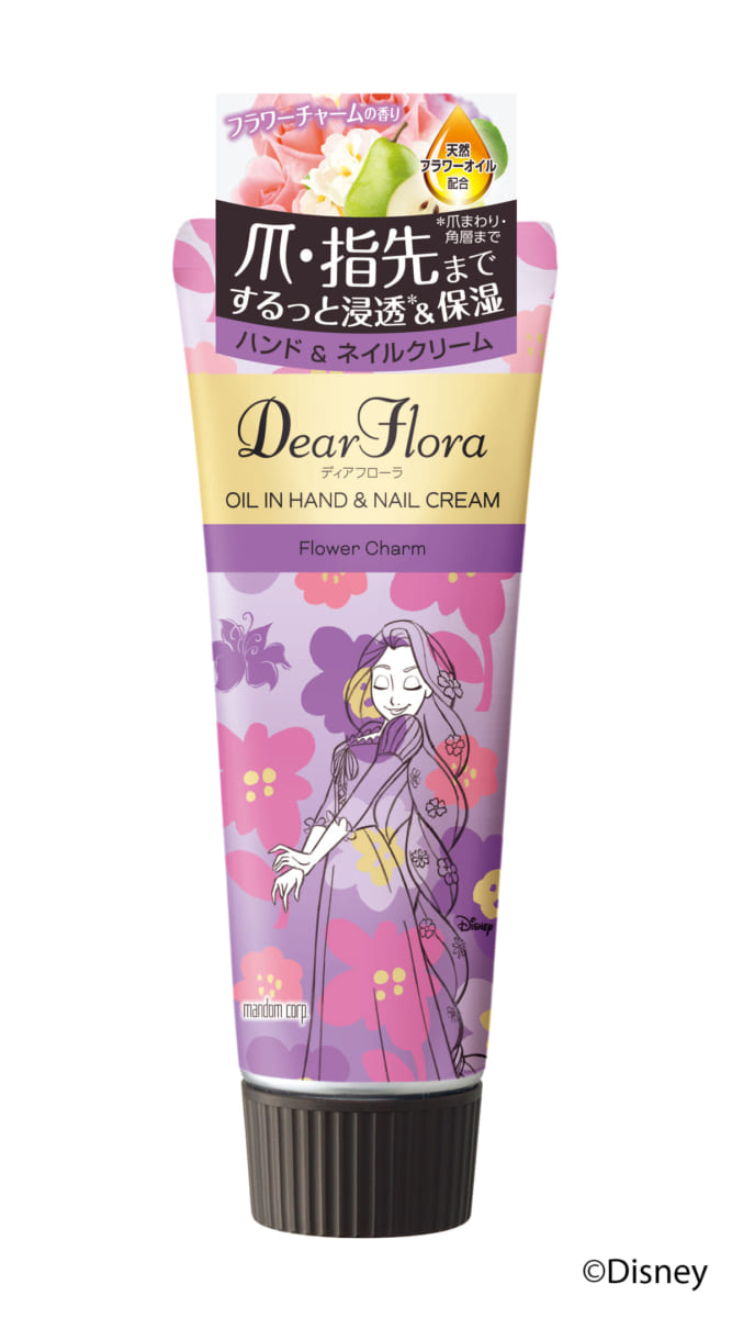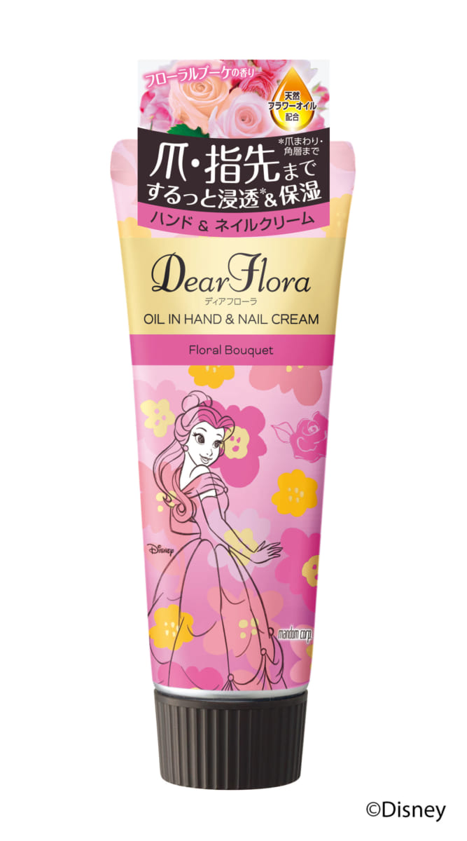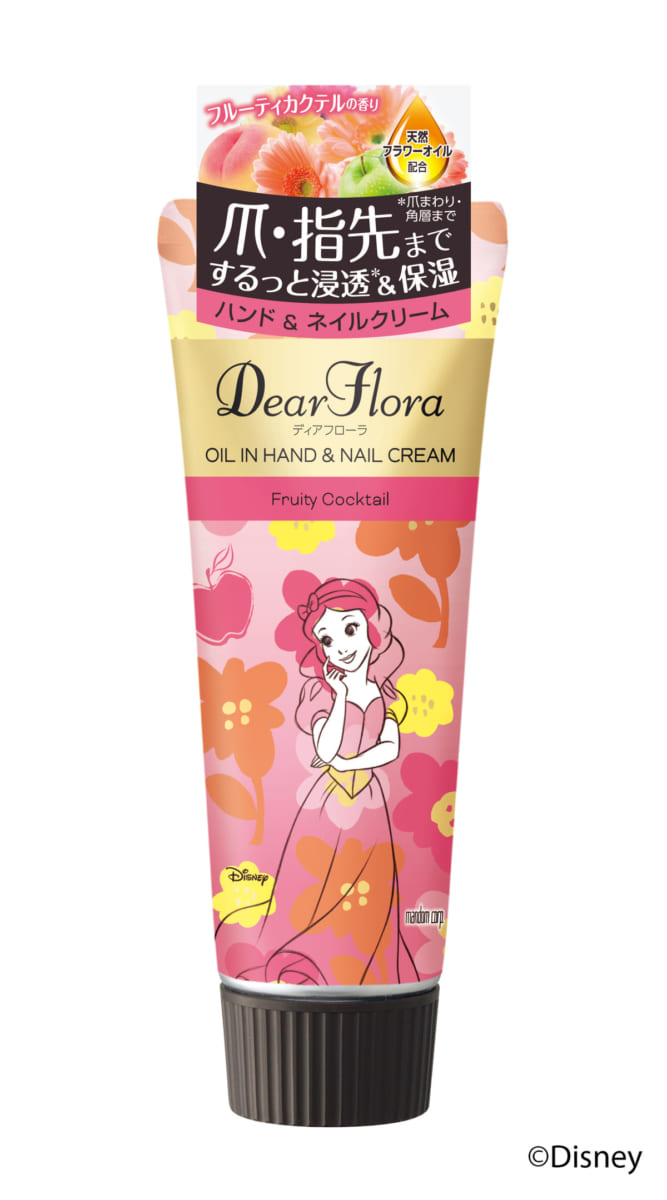 4種のフラワーオイル配合で、しっとりやわらかな手指に導く「マンダム ディアフローラ オイルイン ハンド&ネイルクリーム」に、新香調を加えたディズニープリンセスデザインが登場。