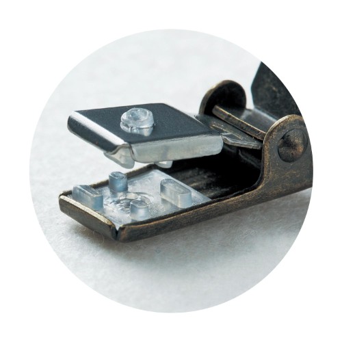 パチンと留めるだけの簡単装着タイプのストールクリップ。