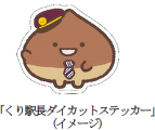 さらに各店舗でコラボレーショングッズを2,000円(税込)以上購入で、オリジナルノベルティ(くり駅長ダイカットステッカー)が1枚もらえます!