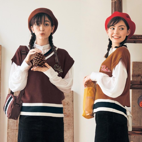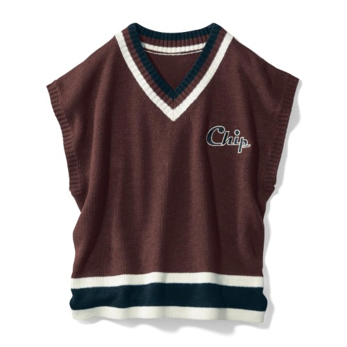 「チップ&デール」をイメージした色と胸元の刺繍がポイントのニットベスト。