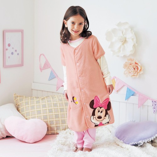 ガーリーなピンクに、頬杖をついている「ミニーマウス」のアップリケが可愛さ満点!
