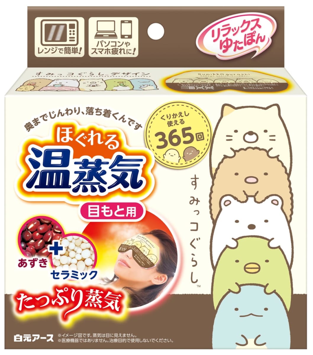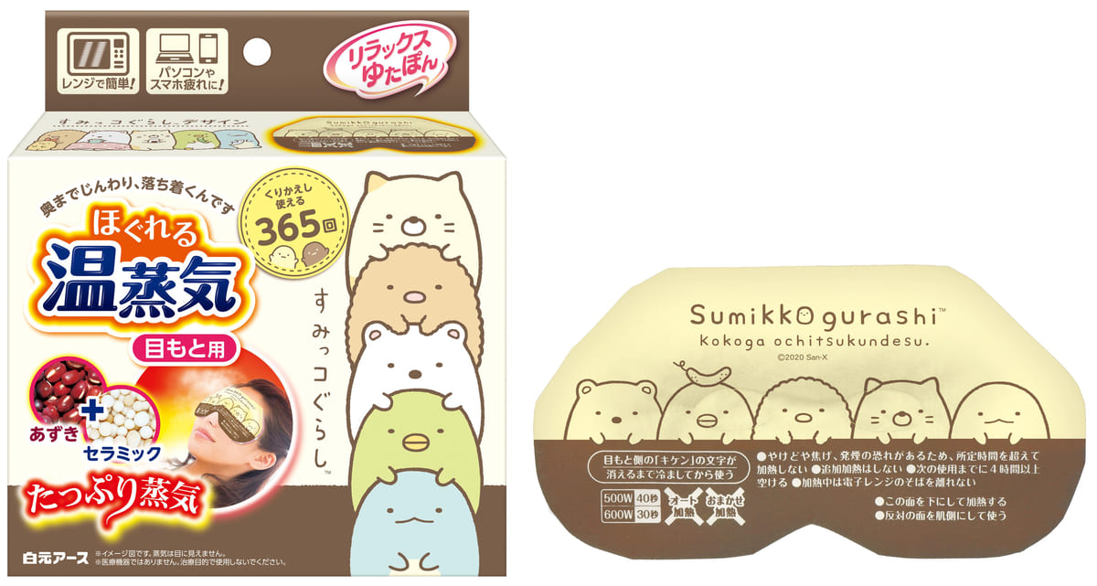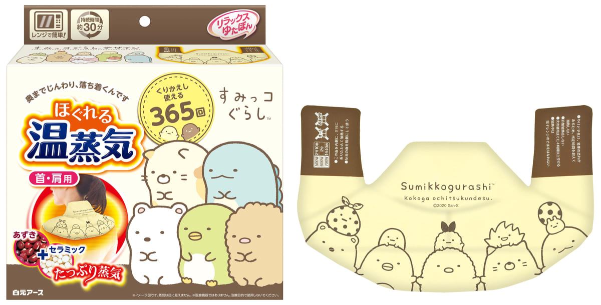 白元アースの「リラックスゆたぽん ほぐれる温蒸気」シリーズに、「すみっコぐらし」デザインが登場!