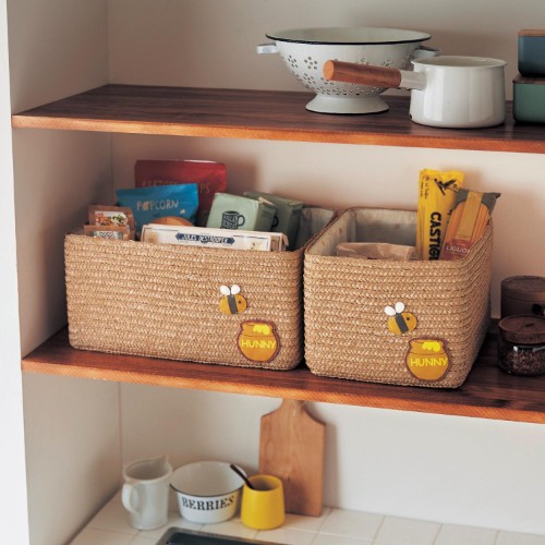 素朴な風合いの麦素材を使用した「くまのプーさん」デザインのバスケット。