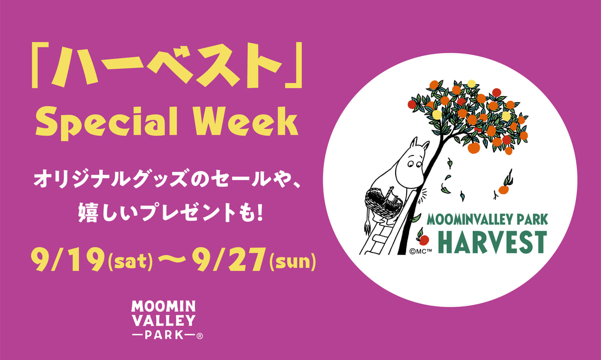 「ムーミンバレーパーク」では、秋の季節を楽しむハーベスト(=収穫祭)をテーマに、この季節ならではの体験ができるイベントを開催します。