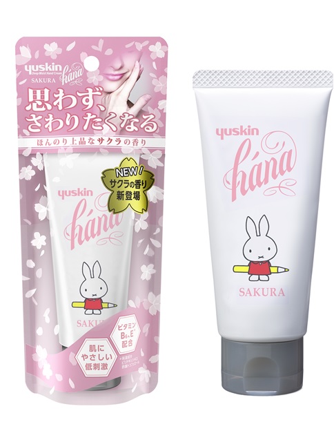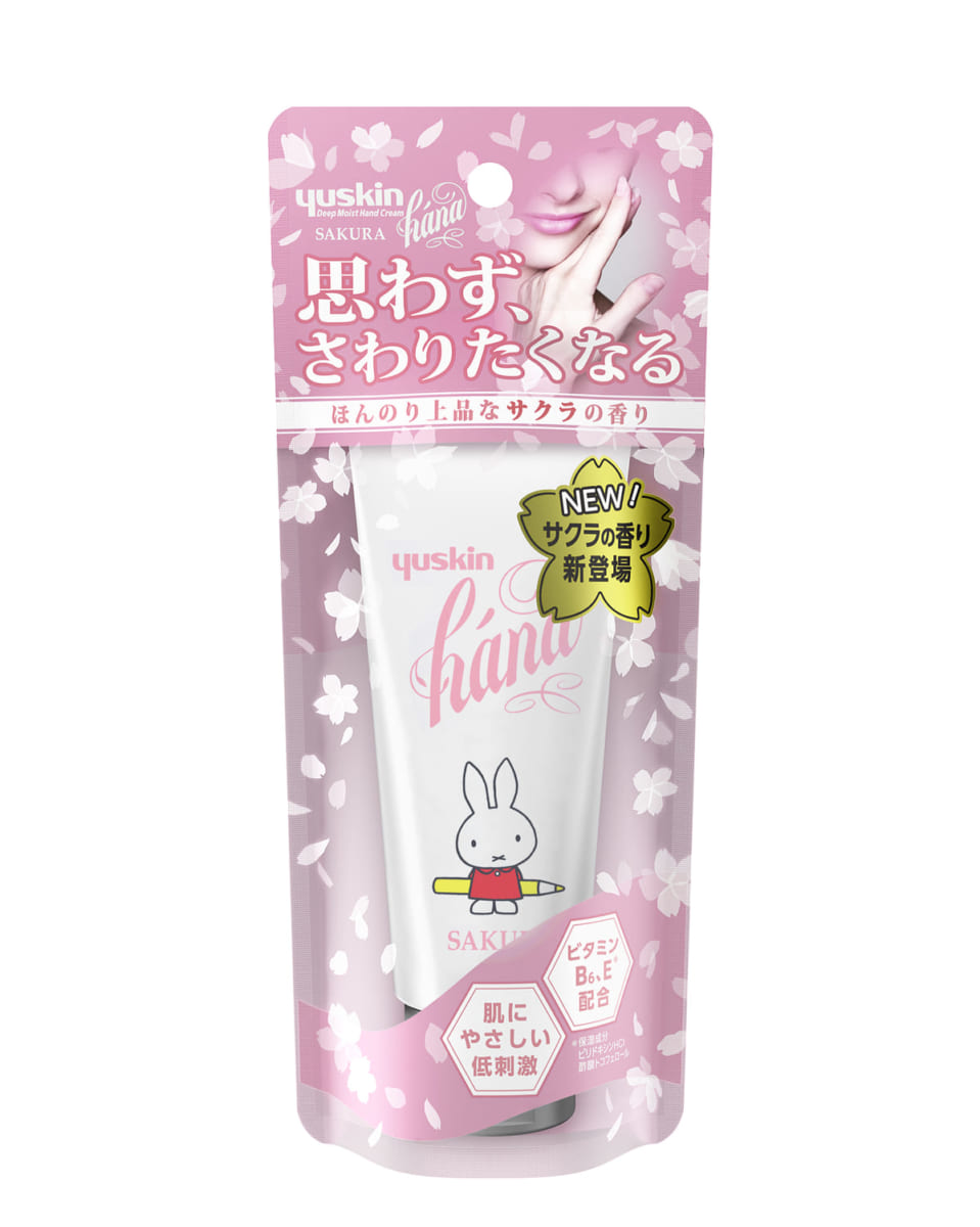 高い保湿力が長時間続き、ベタつかず、日中にも使いやすい使用感で人気の「ユースキンhána ハンドクリーム」から、ふんわりとやさしい香りで新発売の「サクラ」に「ミッフィー」デザインが数量限定で登場します。