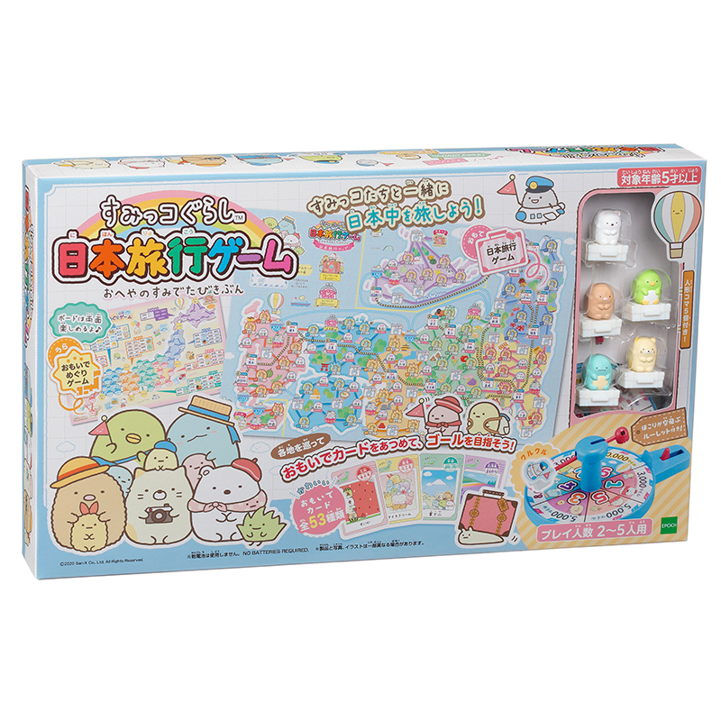 かわいい「すみっコぐらし」のキャラクターたちと一緒に、日本全国を旅行している気分になれるボードゲームです。
