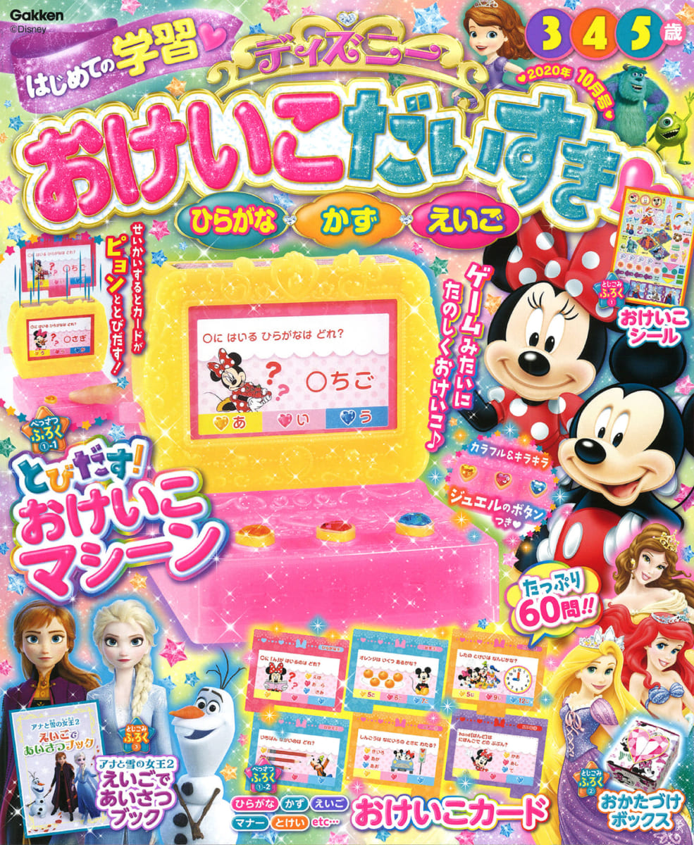 学研プラスから、遊びながら楽しくひらがなやかず、とけいが学べる「ディズニーおけいこだいすき2020年10月号」が発売中。