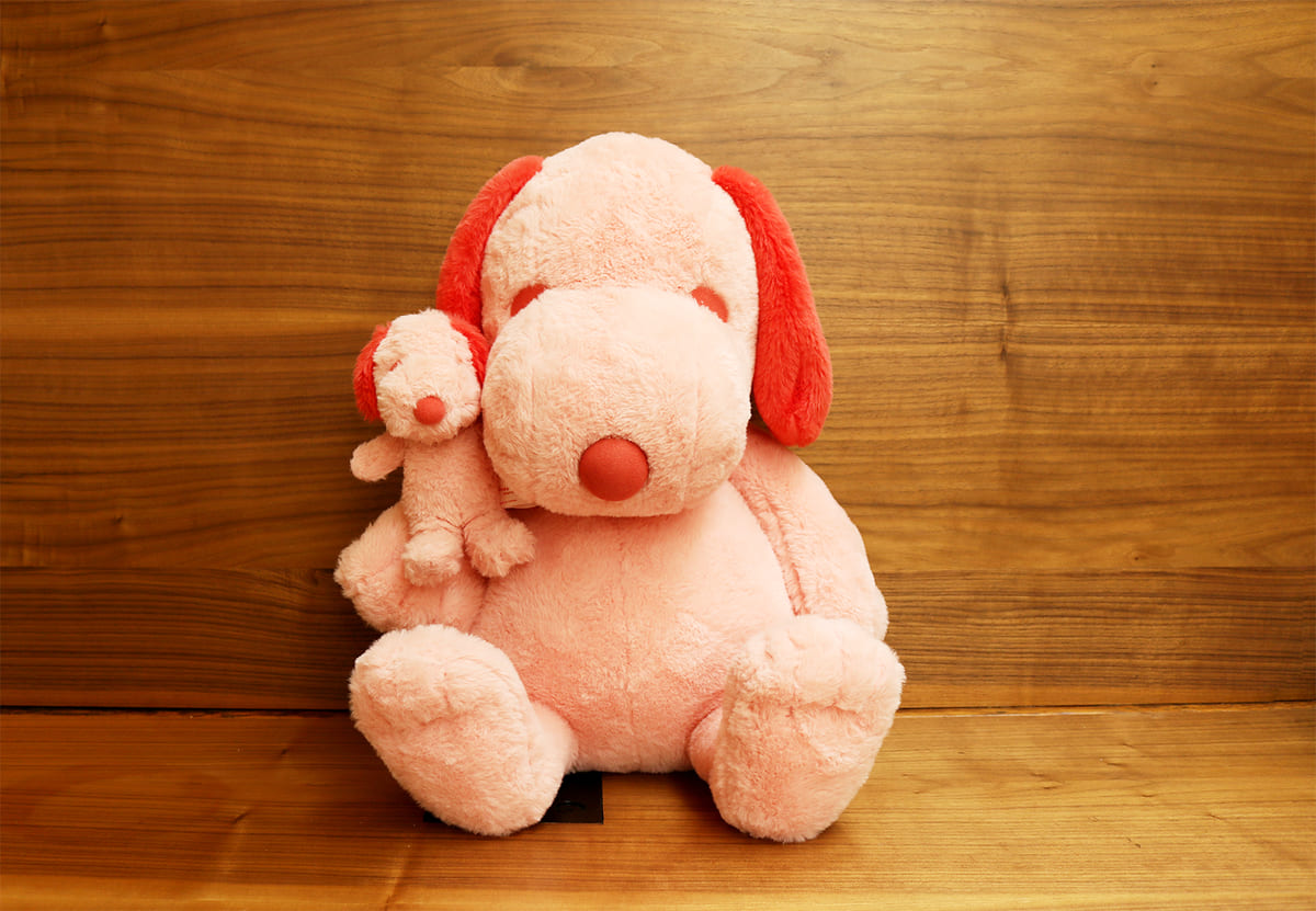 2019年に、PEANUTS HOTELの1周年を記念して販売された大人気のピンクのぬいぐるみ「スヌーピー」