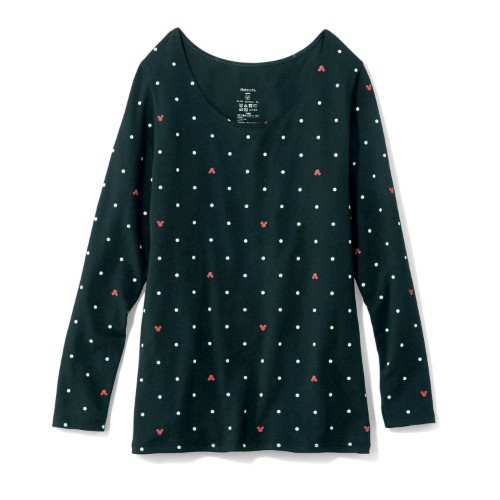 綿混あったかインナー・長袖レディース ミッキーモチーフ ドット
