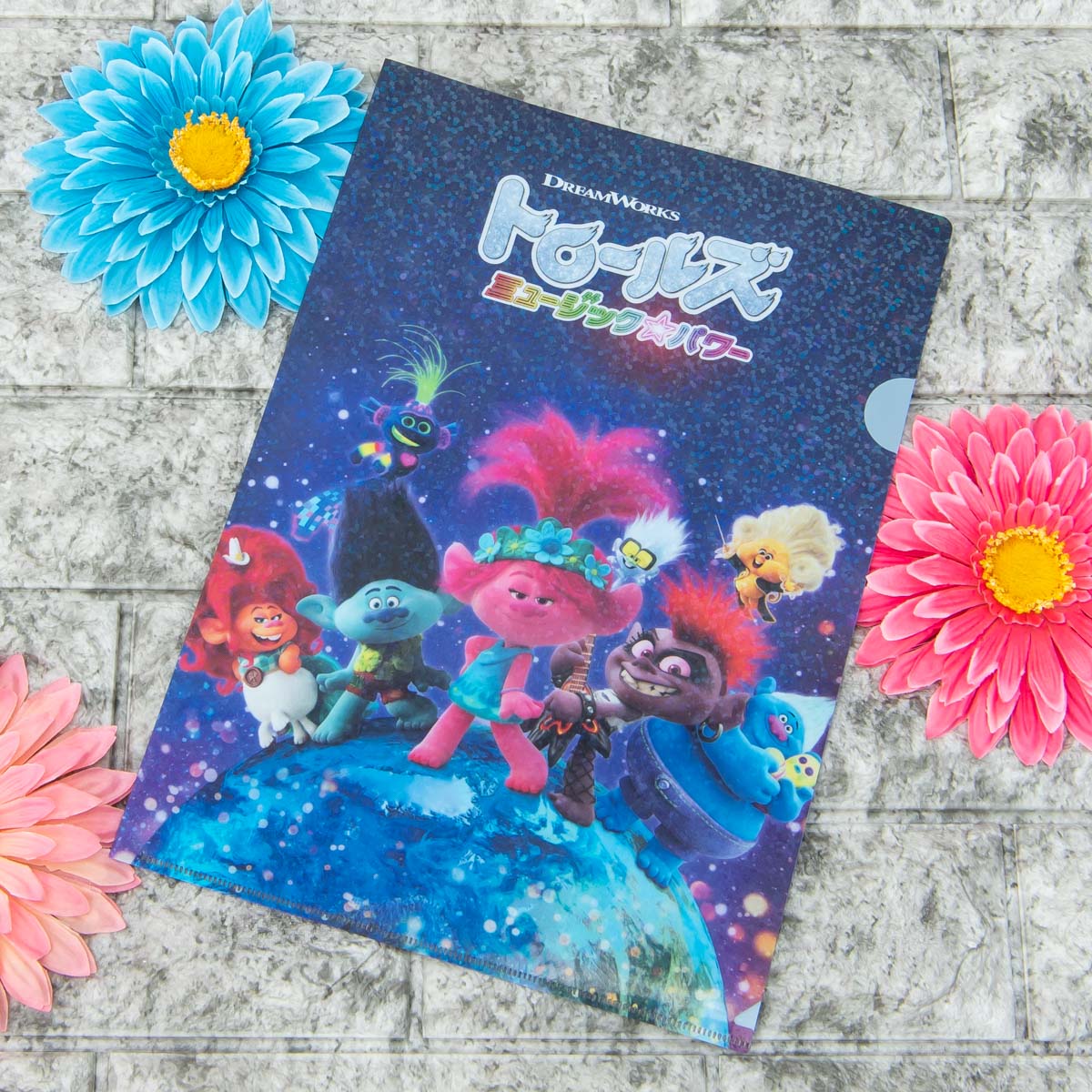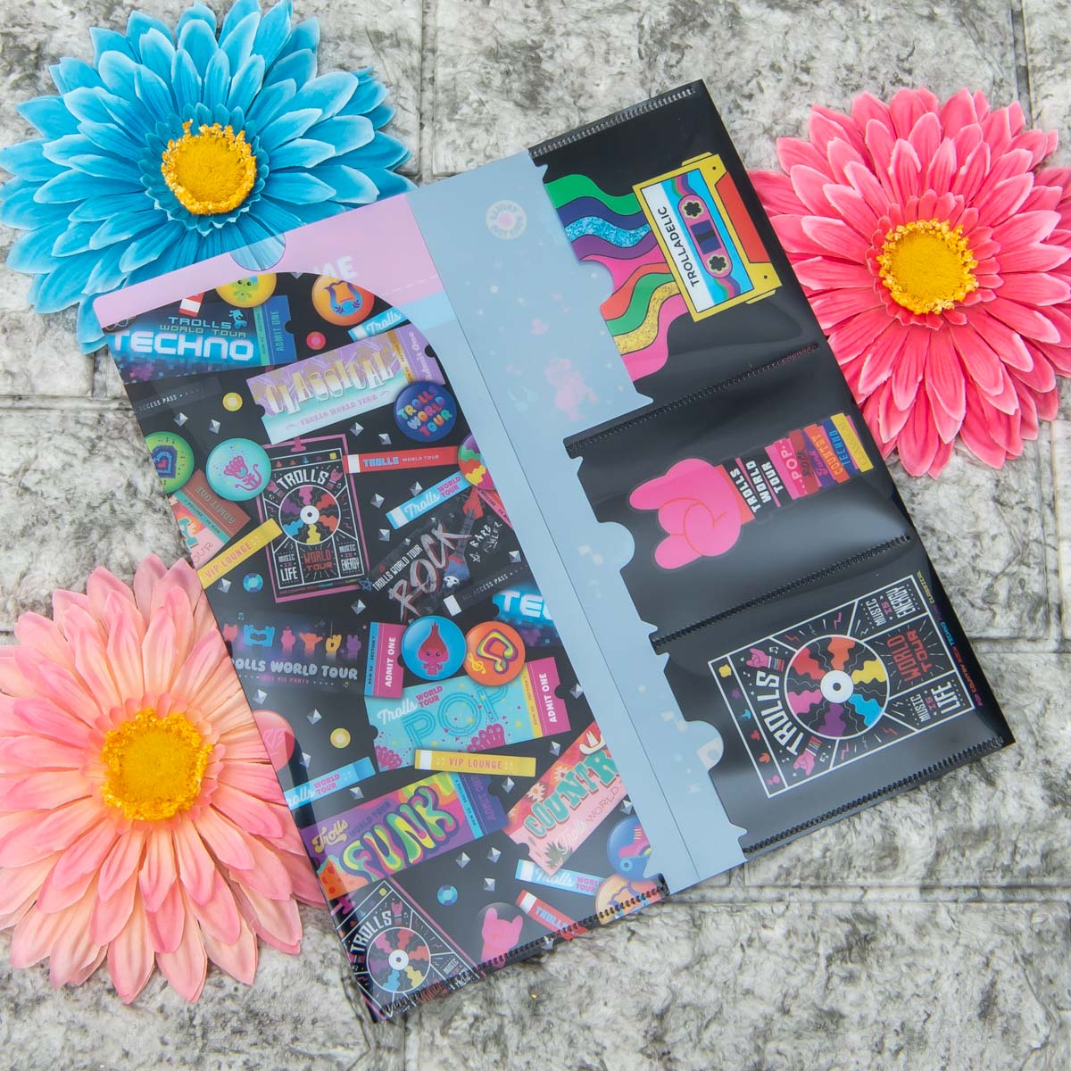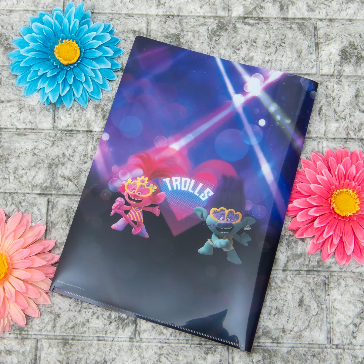 見開きで書類整理がしやすいWポケットクリアファイルも、トロールズたちで賑やかに!