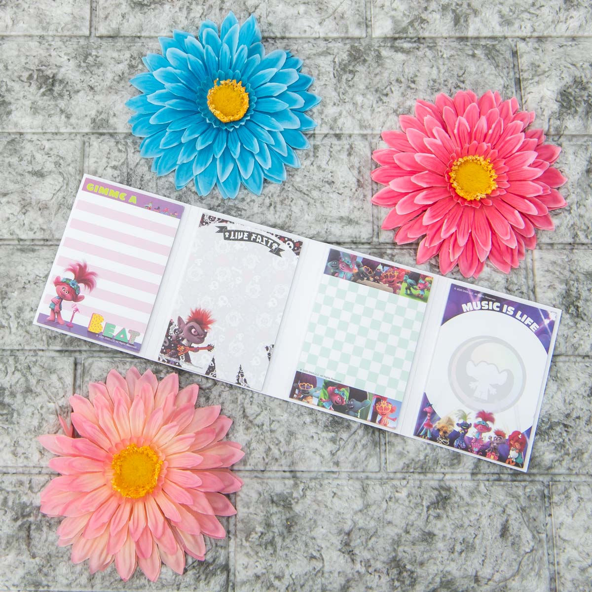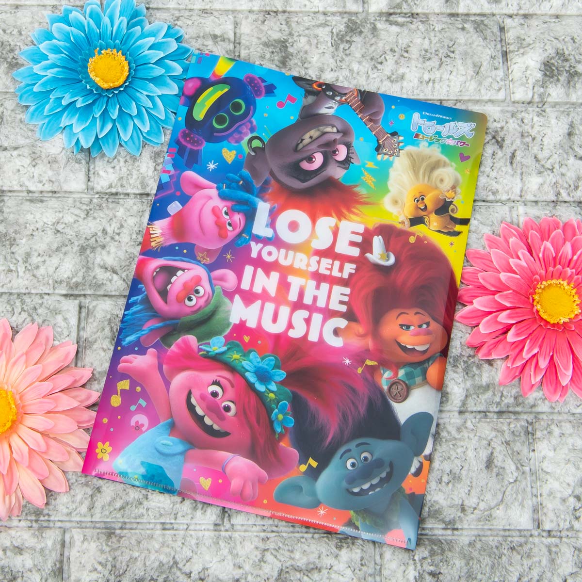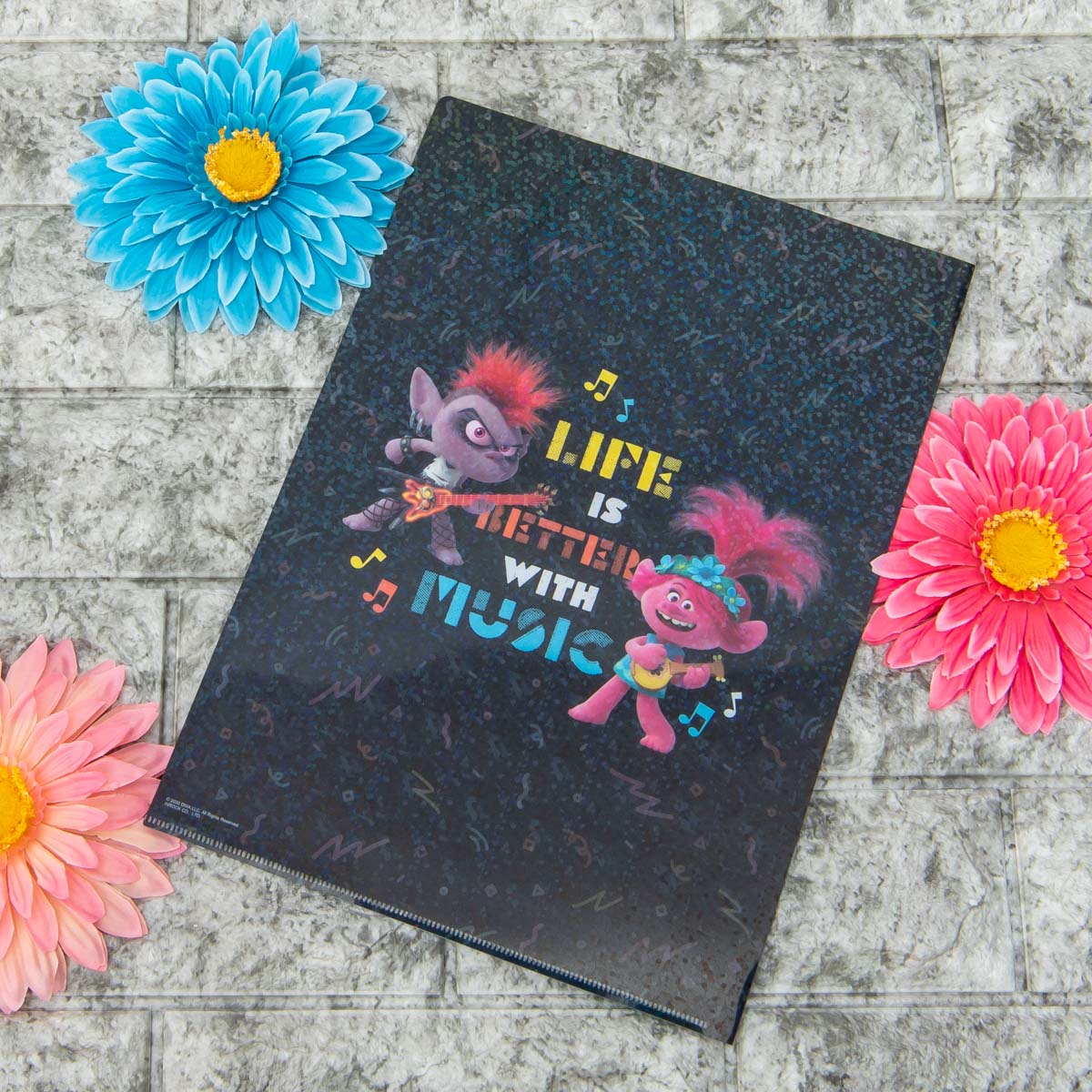見開きで書類整理がしやすいWポケットクリアファイルも、トロールズたちで賑やかに!