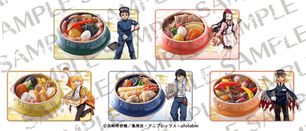 「無限列車駅弁~峠の釜めし 竈門炭治郎編~」「無限列車駅弁~峠の釜めし 竈門禰豆子編~」「無限列車駅弁~峠の釜めし 我妻善逸編~」「無限列車駅弁~峠の釜めし 嘴平伊之助編~」「無限列車駅弁~峠の釜めし 煉獄杏寿郎編~」として、「炭治郎」たちをイメージしたオリジナル釜めしが登場します。