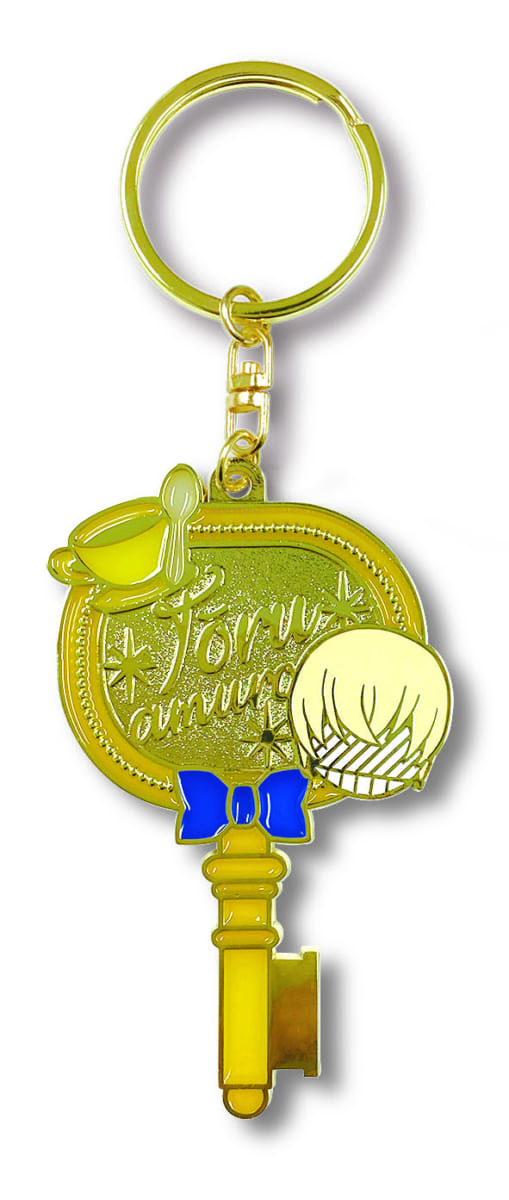 いつも着ているジャケットをイメージしたブルーの鍵に、赤い蝶ネクタイ。