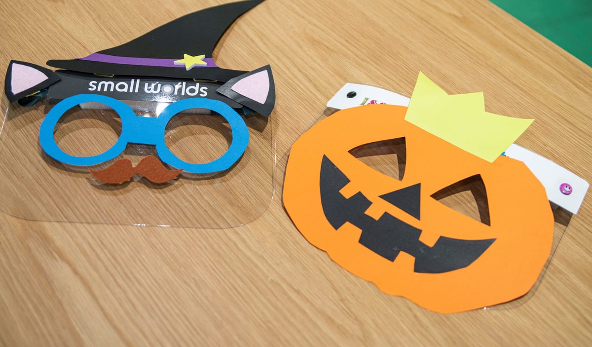 ジャック・オー・ランタンなどハロウィンの装飾が施されたフェイスガード作りが体験できます。