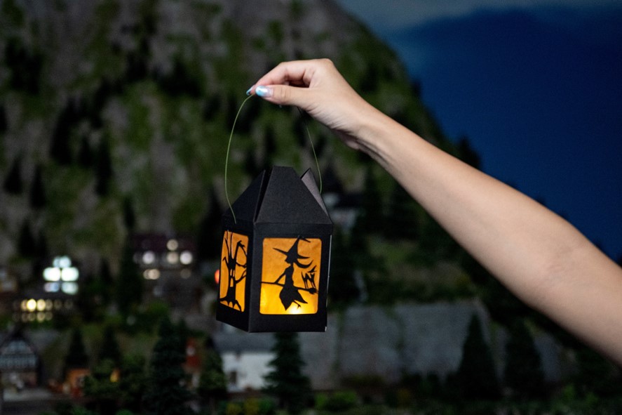 LEDライトが光る、ハロウィンオリジナルのランタン作りを体験することができます。