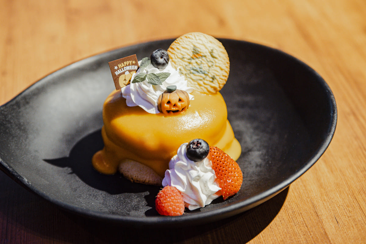 また、2Fレストランではふわふわのパンケーキにかぼちゃクリームがたっぷりとトッピングされたハロウィン限定メニューが登場します。