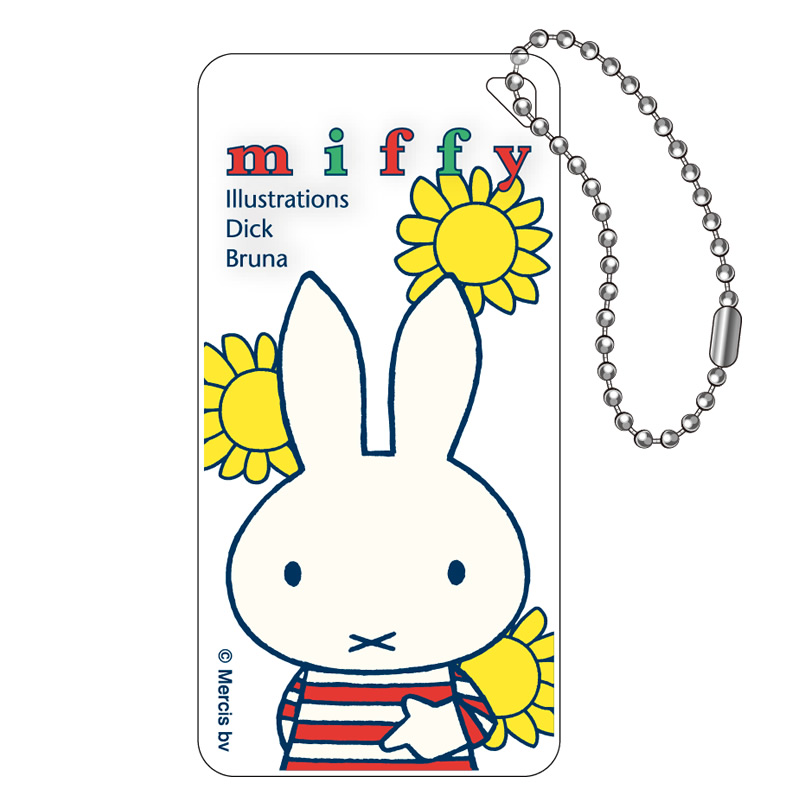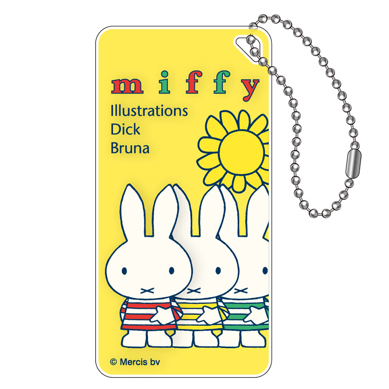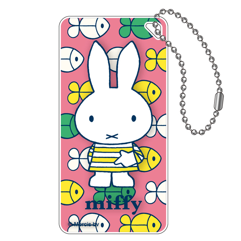 アクリルプレートにしましまワンピースの「ミッフィー」がプリントされた、「ミッフィー」デザインの「ドミテリアキーチェーン」がアイアップから登場!