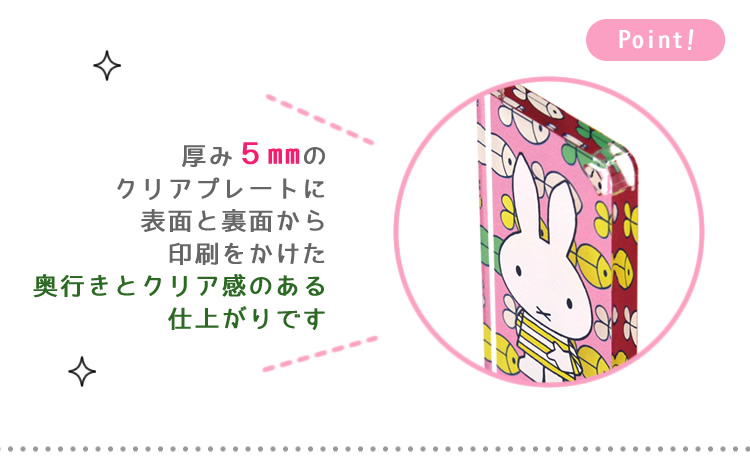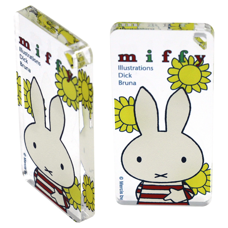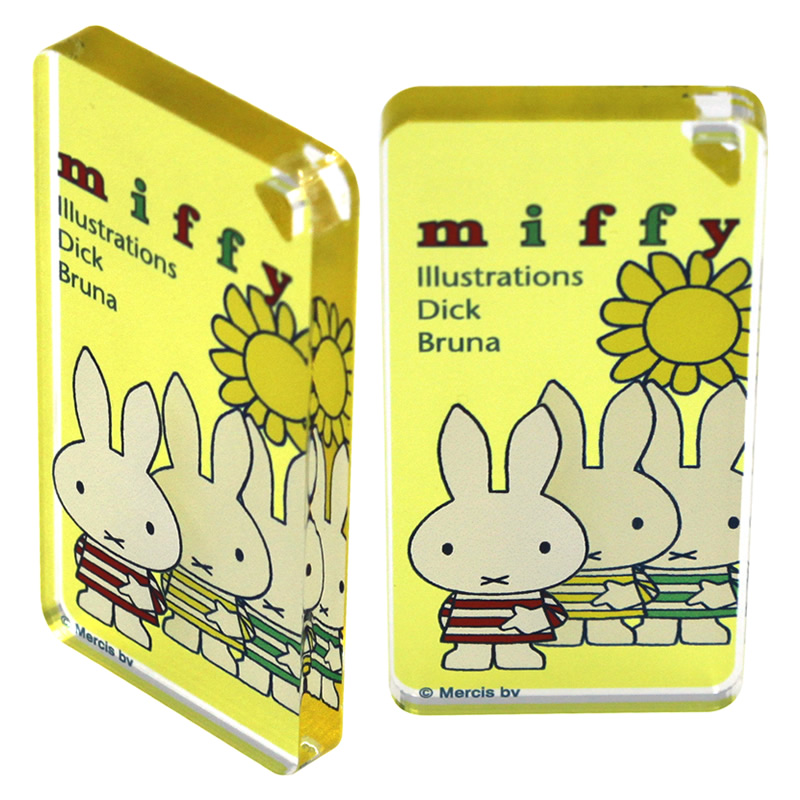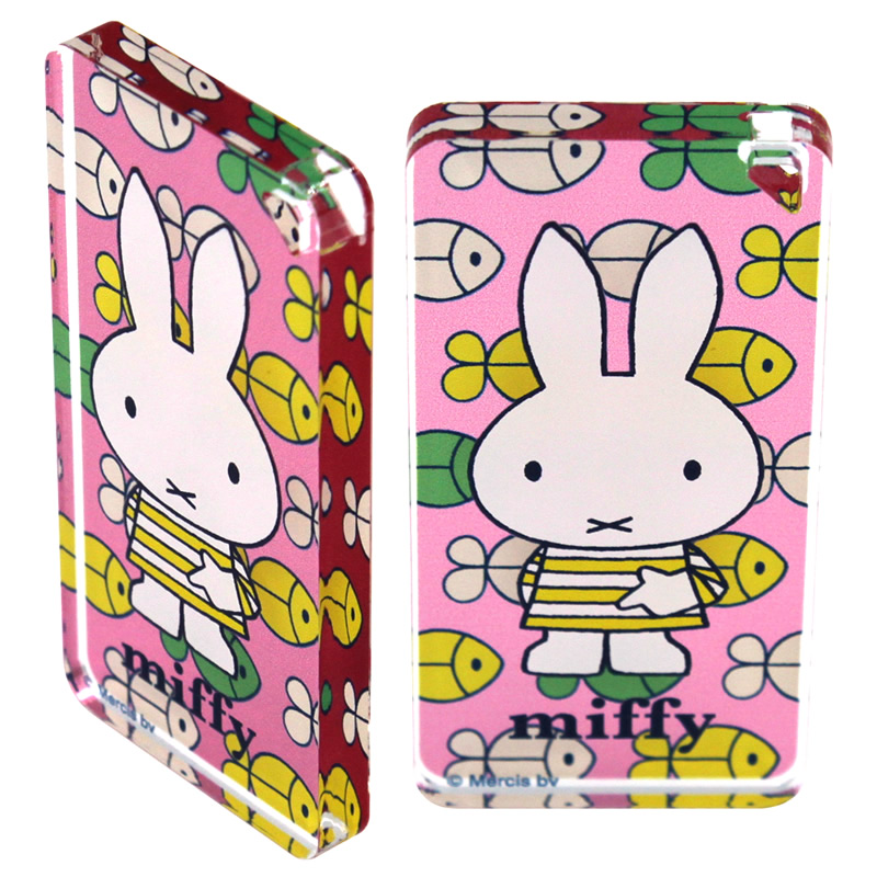しましまワンピースの「ミッフィー」が、厚さ5mmのしっかりとしたアクリルプレートにプリントされています。