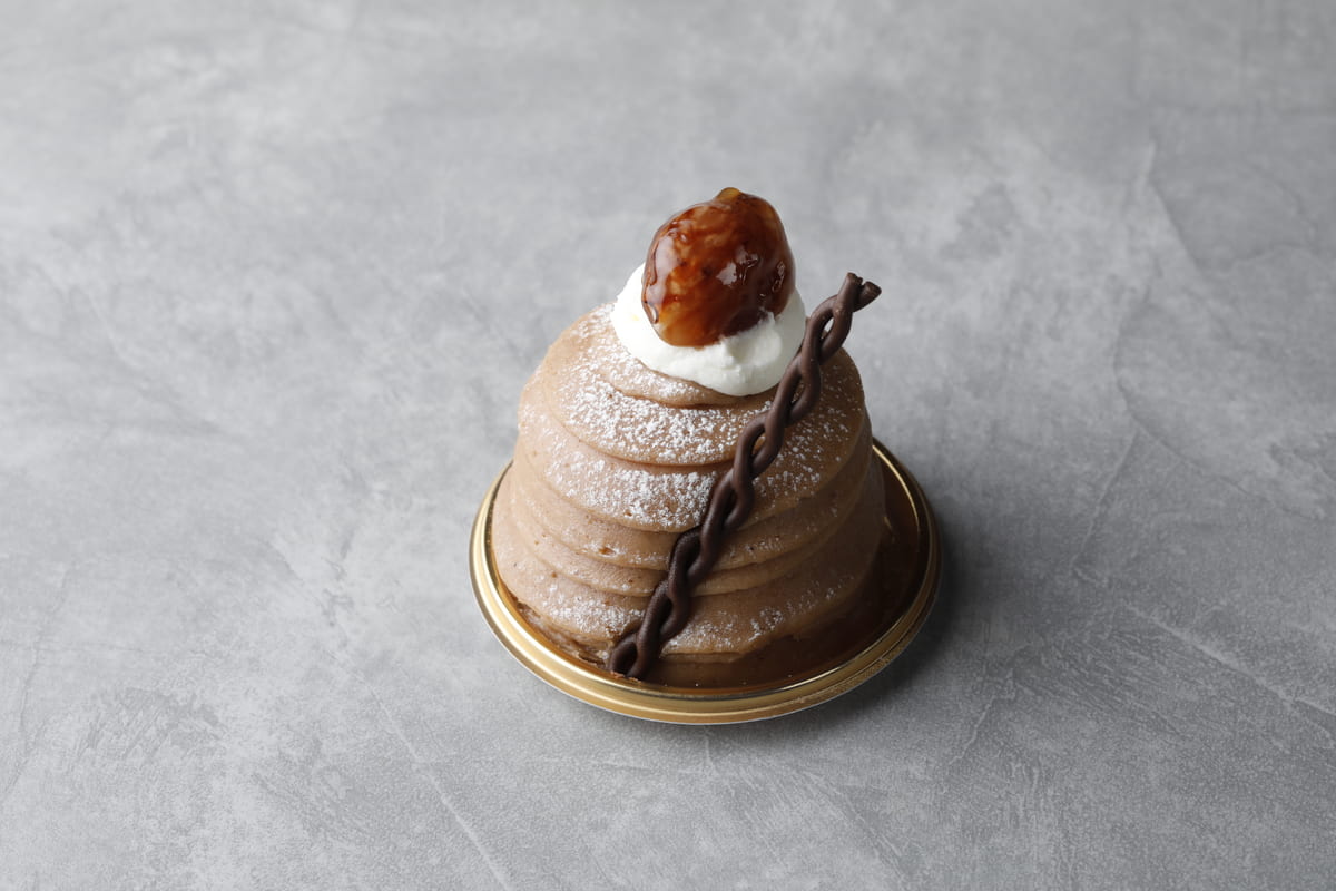 トップには生クリームとマロンクリーム、そしてその上に大粒のマロンを飾り、たっぷりと栗を堪能できる一品です。