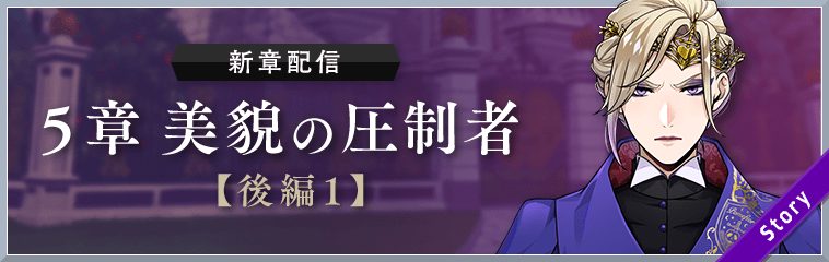 メインストーリー 5章「美貌の圧制者」は前編1・前編2・中編・後編1・後編2の5部構成となる予定。